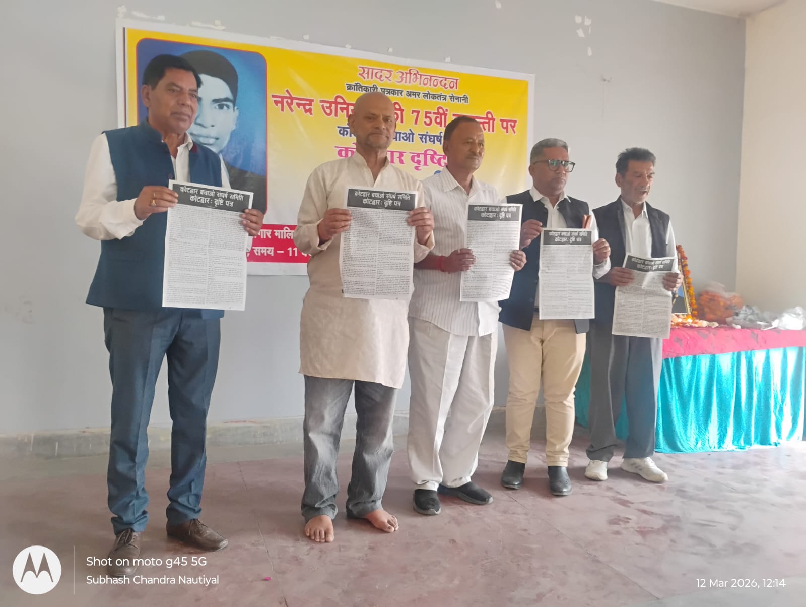 आज क्रान्तिकारी पत्रकार अमर लोकतंत्र सेनानी नरेन्द्र उनियाल की 75 वीं जयंती के अवसर पर कोटद्वार बचाओ संघर्ष समिति के बैनर तले एक कार्यक्रम आयोजित किया गया। कार्यक्रम में नरेन्द्र उनियाल के कृतित्व एवं व्यक्तित्व को याद करते हुए उन्हें सादर श्रद्धांजलि दी गयी। इस अवसर पर उन्हें याद करते हुए वक्ताओं ने कहा कि, उन्होंने अपने साहस और प्रतिबद्धता से जनपक्षीय पत्रकारिता की परंपरा को मजबूत किया तथा नरेंद्र उनियाल उन पत्रकारों में थे जिनके लिए पत्रकारिता केवल खबर लिखने का माध्यम नहीं थी, बल्कि समाज के संघर्षों और लोकतांत्रिक मूल्यों की रक्षा का दायित्व थी। उनके संपादन में प्रकाशित समाचार पत्र धधकता पहाड़ अपने समय में जनपक्षीय और निर्भीक पत्रकारिता का प्रतीक बन गया था। पहाड़ के सामाजिक-आर्थिकी के सवाल, आम लोगों की पीड़ा और क्षेत्रीय असमानताओं के मुद्दे इस अखबार के माध्यम से प्रभावी ढंग से उजागर किया जाता था। यही कारण रहा की आपातकालीन समय तत्कालीन सरकार की आंख की किरकीरी रहे वे 19 माह तक जेल में रहे।