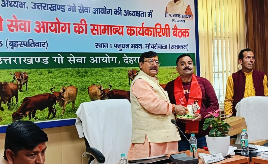 देहरादून : उत्तराखंड गौ सेवा आयोग के अध्यक्ष डॉ. पंडित राजेन्द्र अणथ्वाल की अध्यक्षता में बृहस्पतिवार को मोथरोवाला स्थित पशुधन भवन सभागार में गौ सेवा आयोग की कार्यकारिणी की बैठक संपन्न हुई। जिसमें राज्य के सभी जनपदों में गौ सदनों के निर्माण, संचालित गौ सदनों की स्थिति और गौ कल्याण कार्यक्रम की विस्तार से समीक्षा की गई। आयोग की बैठक में गौ माता को राष्ट्रमाता का दर्जा देने सहित गोवंश संरक्षण हेतु कई प्रस्तावों को भी पारित किया गया।